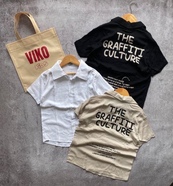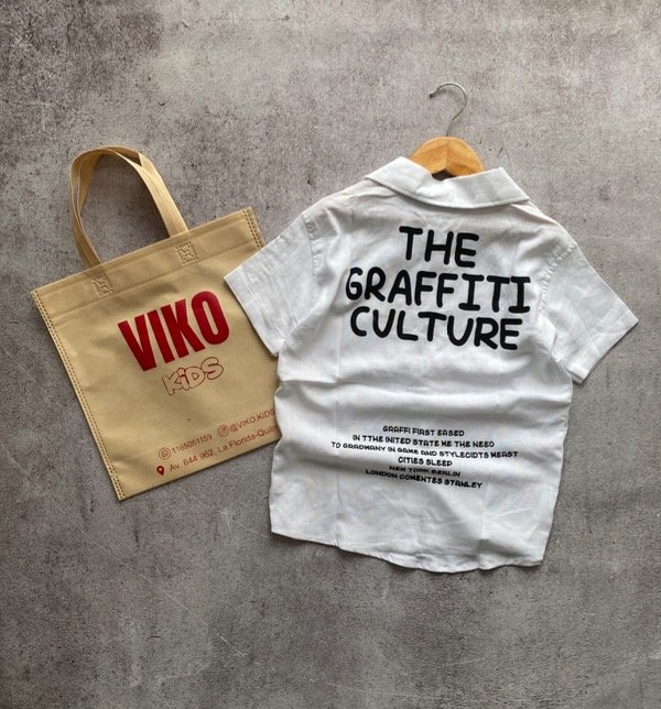 Camisa de lino con estampa en la espalda.