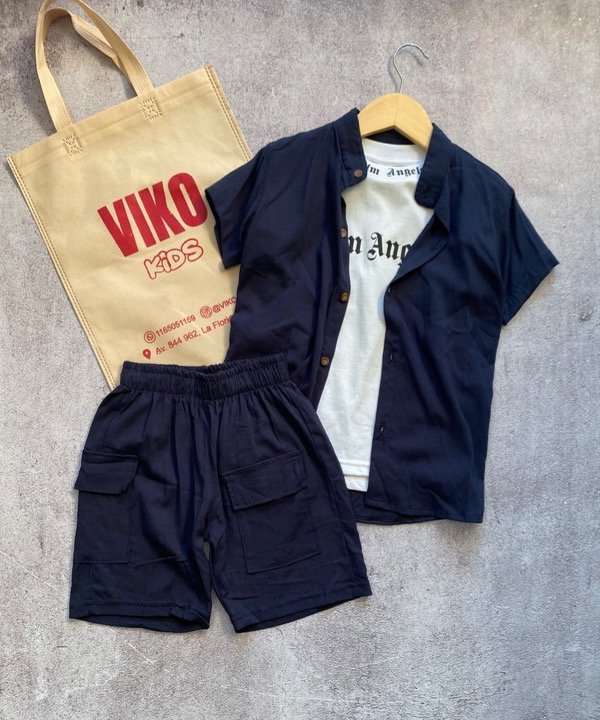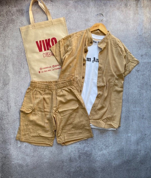 Camisa cuello mao y short con bolsillos de lino.
