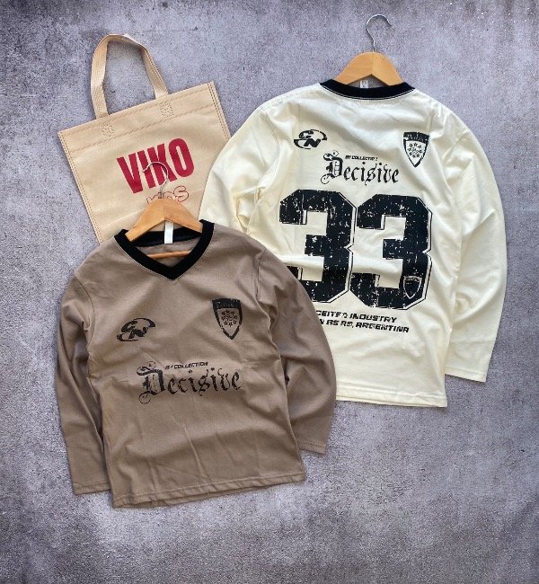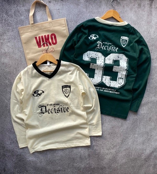 Remera manga larga, doble estampado.